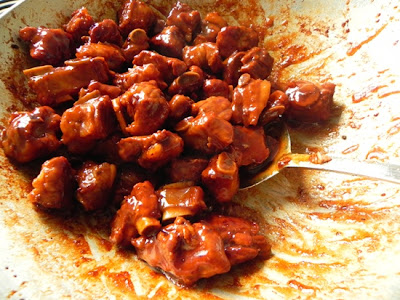 На кило свиных ребрышек, нарезаных длиной в 3-5 см надо будет 3 кубика такого тофу + ложка самого рассолу, или "сока".